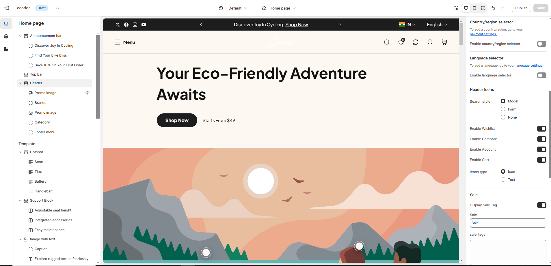 * In the Theme Editor, navigate to **Header Section**.