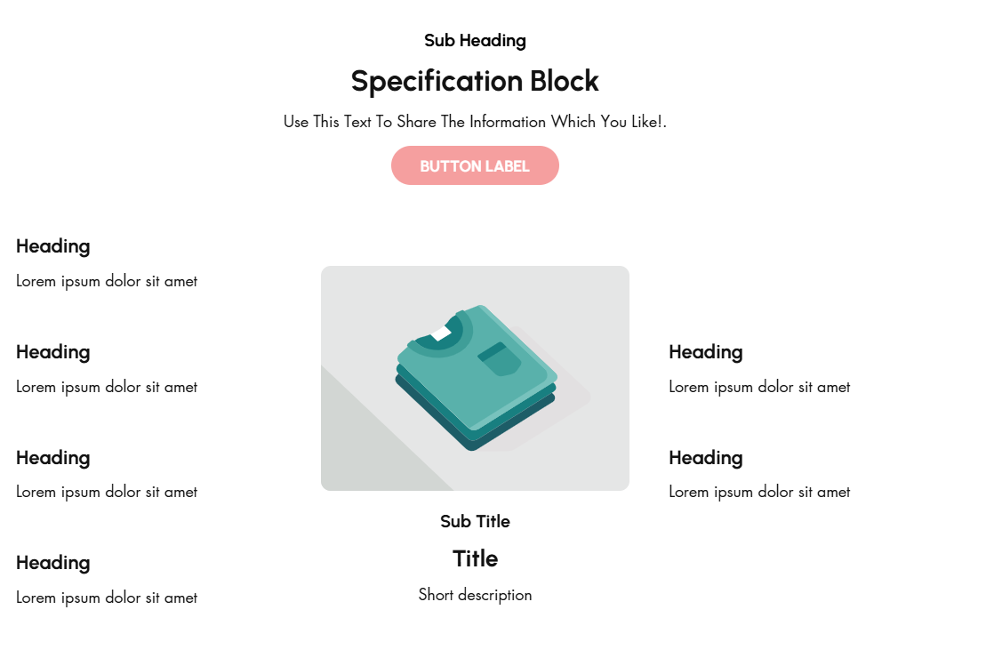 * **Heading:** Set a custom title **(e.g., "Specification block").**
