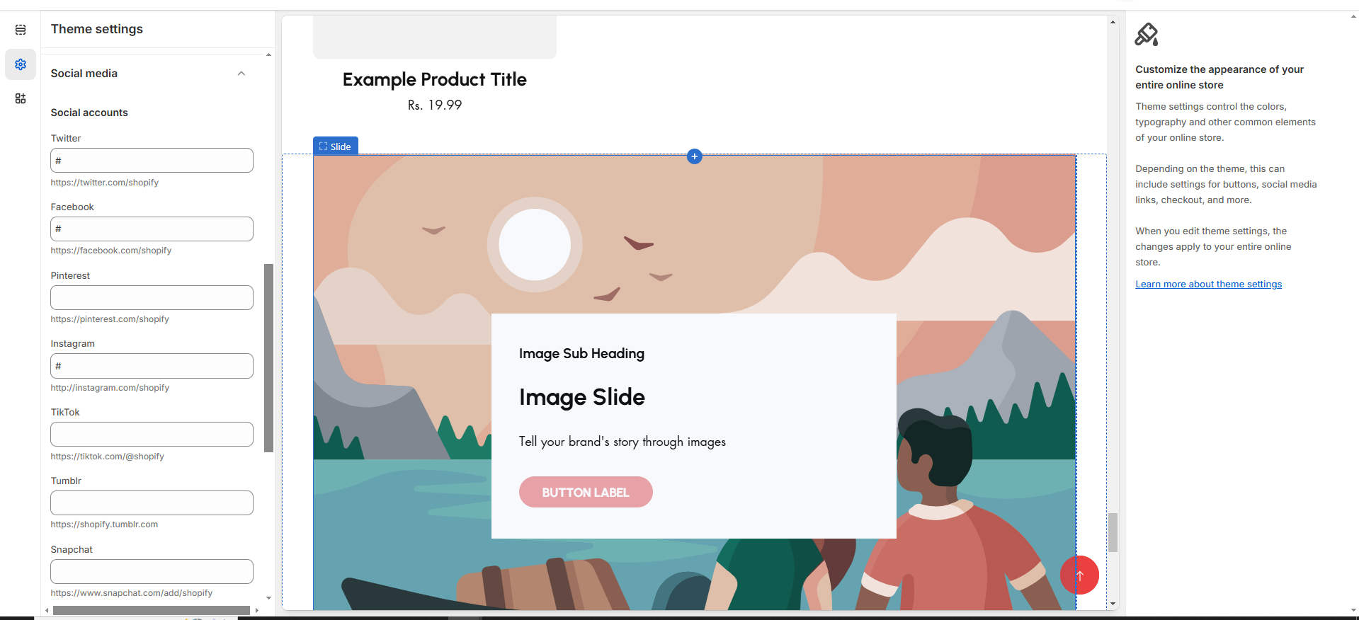 To add links to your social media accounts, enter the website addresses for your accounts in the relevant Social accounts fields. You need to enter full links, such as https://instagram.com/ shopify or https://tiktok.com/@shopify.