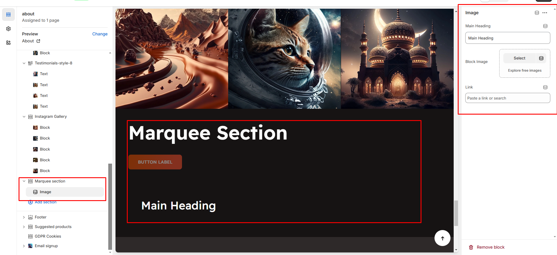 Block Image:Upload the image for the marquee block