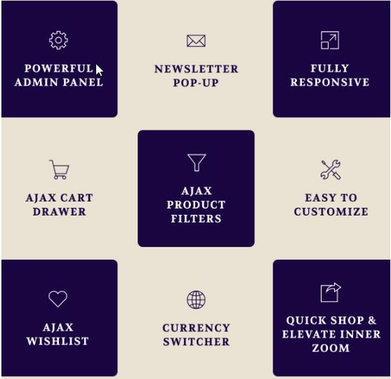 • Great for SEO: Uses the latest Shopify SEO features and product data is formatted for Google rich snippets, so that product listings are optimized for search engines.