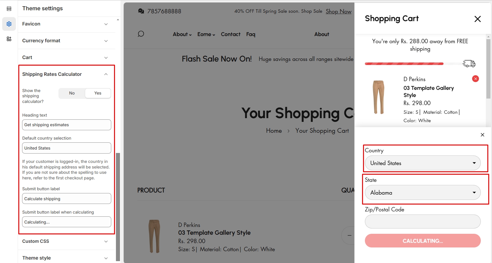 Step 4 : Theme Settings > Shipping Rate Calculator