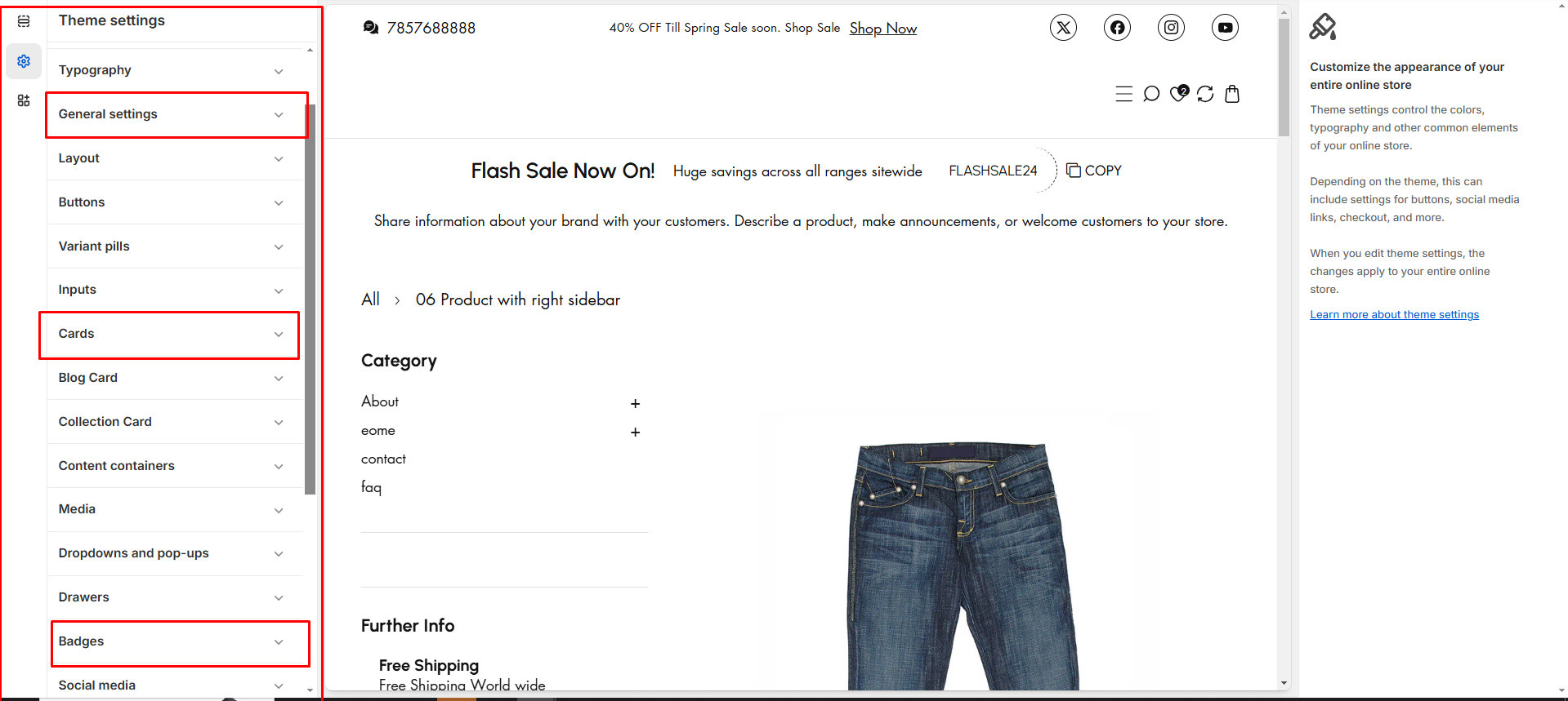 Card : Modify product card via Customizer > Theme Settings > Cards.