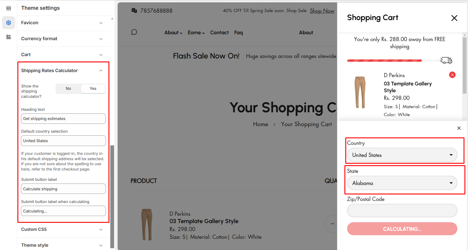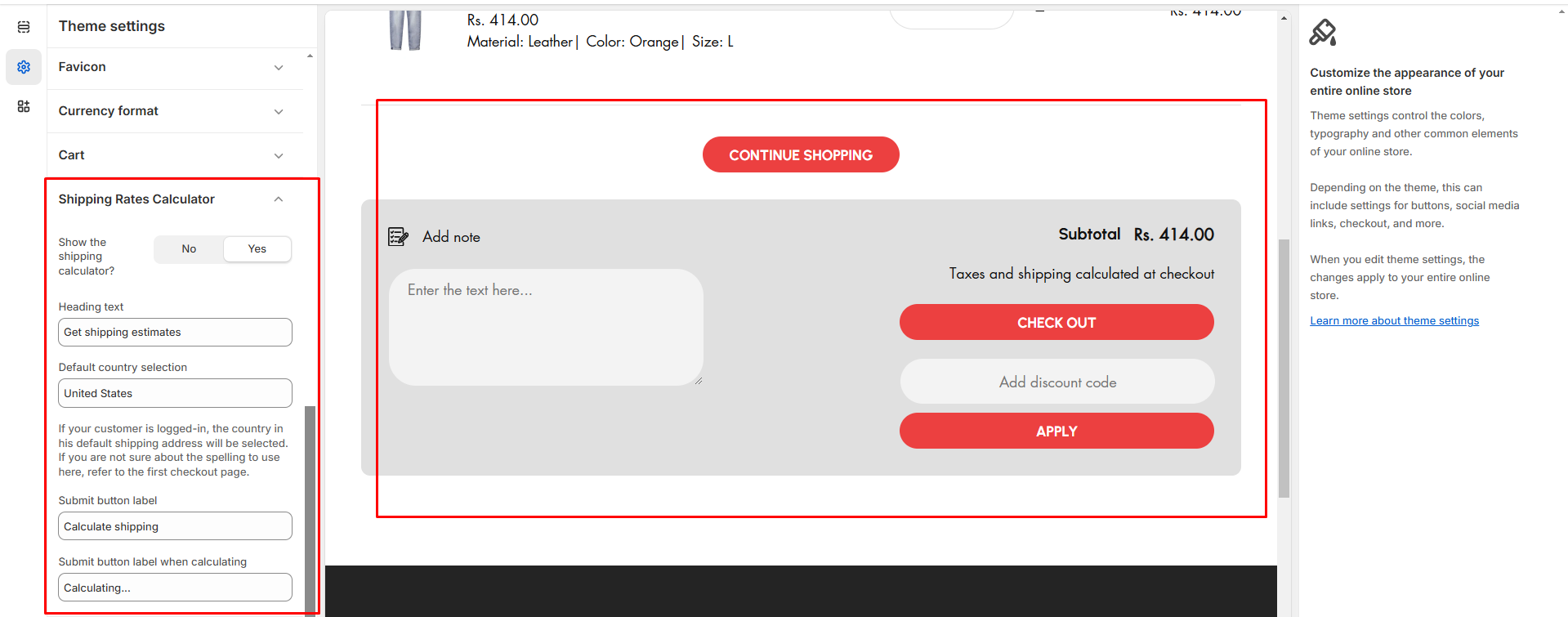 Step 4 : Theme Settings > Shipping Rate Calculator